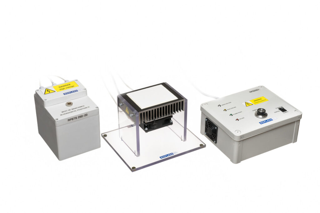 The RPS250+ is designed for stable continuous operation in laboratory and industrial environments. In contrast to larger DCSBD systems such as the RPS400, the plasma unit itself does not require an oil-based cooling or insulation medium, significantly simplifying installation, handling, and maintenance. Plasma is generated directly in ambient air at atmospheric pressure, without the need for vacuum systems or external process gases.