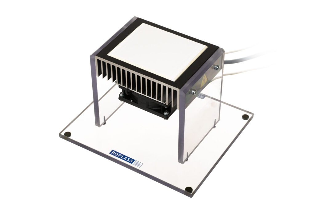 The RPS250+ is a compact atmospheric-pressure plasma source based on DCSBD technology, providing a uniform plasma treatment area of approximately 90 × 85 mm.